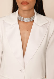 Jaleco feminino Olivia gola de cetim off-white